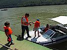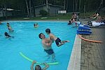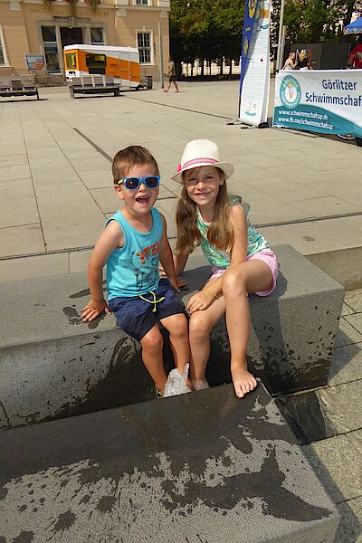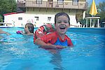 Die Kinder planschten und spielten begeistert Feuerwehrmann Sam. Während Marla durch Leichtsinnigkeit immer wieder ins tiefere Wasser geriet, musste Marlon als Feuerwehrmann Sam mit seiner Luftmatratze ausrücken und Marla retten.