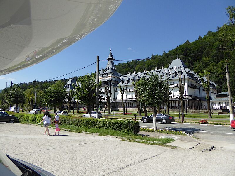 Angekommen in Arad mussten wir erstmal das Stadtzentrum suchen und fanden dann eine Prachtallee nach russischen Vorbild vor, die rechts und links von durchaus beeindruckenden Gebäuden gesäumt wurden. Leider hatten wir großes Pech beim Parken. Wir fuhren in den grünen Mittelstreifen und fanden auch eine schöne Lücke, allerdings wurde es ziemlich eng für die anderen Fahrzeuge. Leider konnten wir aber auch nicht wieder raus fahren, da ein anderes Wohnmobil sich unglaublich blöd hingestellt hatte. Irgendwann hatten dann alle Fahrzeuge hinter uns verstanden, dass der einzigste Weg weiter darin besteht, langsam rückwärts vom Parkplatz zu fahren. Nach einer gefühlten Ewigkeit (knapp eine Stunde) waren wir vom Parkplatz unfallfrei wieder runtergefahren. Dafür war jetzt ein Lieferfahrzeug in die Falle gefahren und wieder ging nichts mehr.