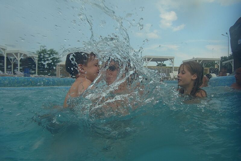Unser heutiges Ziel war Oradea. Genauer gesagt der "Aquapark Nymphaea". Gegen 14 Uhr erreichten wir den Parkplatz und kurze Zeit später waren wir auch schon drin. Das Bad ist definitiv Oberliga, sehr großzügig angelegt und bietet viele Überraschungen. Egal ob Indoor-Spielplatz, sehr warme Wassertemperaturen oder abwechslungsreiche Rutschen der Extraklasse. Hier stimmt einfach alles. Es gab eine Rutsche mit einem 3er-Ring, die wir alle zusammen gerutscht sind. Marlon saß bei Ulli auf dem Schoß und meinte nach der Rutschpartie: "Ich bin gar nicht untergetaucht."  Und so verwundert es nicht, dass die sechs Stunden wie im Fluge vergangen sind. Kurz vor Schluss hat sich Marla auch noch getraut und ist mehrfach vom 3 Meter Brett gesprungen.