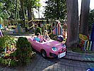 So fuhren wir direkt nach Polen. Unser erstes Ziel war eine kleine Holzkirche aus dem 15. Jhd. Hierher war schon der spätere Pabst, Johannes Paul II., gepilgert. Leider konnten wir sie nur von außen besichtigen. Aber immerhin haben wir durch zwei Gittertore einen Blick ins Innere erhaschen können. Die nächste größere Stadt nutzen wir zum Geldabheben, aber so richtig inspiriert hat uns diese nicht. Aber direkt nach Krakau durchfahren wollten wir auch nicht. Da kam ein großes Werbeschild am Straßenrand gerade recht: Rabkopark. Ulli checkte kurz übers Internet den Park und die Lage (das wäre vor 3 Jahren aufgrund der Roaming-Gebühren noch nicht denkbar gewesen) und wir entschieden uns für diesen kleinen Freizeitpark. Der Eintrittspreis ist für alle, egal ob groß oder klein, gleich. Knapp 10 Euro haben wir pro Person bezahlt, und es hat sich gelohnt. Der Park war sehr klein, dadurch gab es auch keine großen Wegstrecken zu überwinden. Spielgelegenheiten und Fahrgeschäfte haben sich abgewechselt. Unser Marlon fand so manches Fahrgeschäft nicht so witzig und klammerte sich doch sehr an die Sicherheitsriegel und an Mama. Alles was mit Autos und Zügen zu tun hatte wollte er gleich mehrmals fahren. Kein Problem - denn so richtig viel war nicht los, wir mussten nirgendwo wirklich anstehen. Marla kann mittlerweile von bestimmten Fahrgeschäften nicht genug bekommen. Die Schiffsschaukel gab mir schließlich den Rest - während Marla unglaublichen Spaß hatte, wurde mir so übel, dass ich vorerst für weitere Fahrten nicht mehr zur Verfügung stand. Ulli durfte mit Marla ein weiteres Mal Berg- und Talbahn fahren, vorwärts und rückwärts. Sie tat es Marla zuliebe, mit höchster Konzentration, um der Übelkeit zu entgegnen. Und sie hatte noch das Pech, dass der Fahrgeschäftsleiter bei der zweiten Fahrt eine extra Kohle auflegte, an Zeit und an Geschwindigkeit. Mir hat es vom Zusehen gereicht.