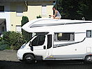 Heute Vormittag standen noch einige kleinere Reparaturen auf dem Programm während Ulli das Wohnmobil noch einmal richtig einräumen wollte. Letztes Wochenende zeigte sich auf dem Campingplatz, dass unsere Snipe Satellitenschüssel nicht mehr richtig eingefahren ist. Zwar lag sie bereits auf, aber ein Rattern des Getriebes signalisierte deutlich, dass der Endlagenschalter nicht korrekt betätigt wurde und somit die Elektronik nicht erkannt hat, dass die Schüssel bereits eingefahren ist. Nach intensiven Studium der Antenne kam ich zu der Erkenntnis, dass nur ein Bruchteil eines Millimeters fehlt, um den Schalter richtig zu drücken. Nach einer gründlichen Reinigung habe ich ein Silikondämpferkissen auf den Schalter geklebt. Somit liegt dieser jetzt 2-3mm höher und wird wieder zuverlässig gedrückt. Hoffen wir das Beste, dass es wirklich so einfach zu beheben war. Weiterhin habe ich noch unseren Papierkorb geklebt (leider nicht erfolgreich wie sich später am Abend noch rausstellen sollte), den Türfeststeller durch einen neuen ersetzt und die Frontpositionslichter neu abgedichtet.
